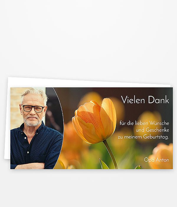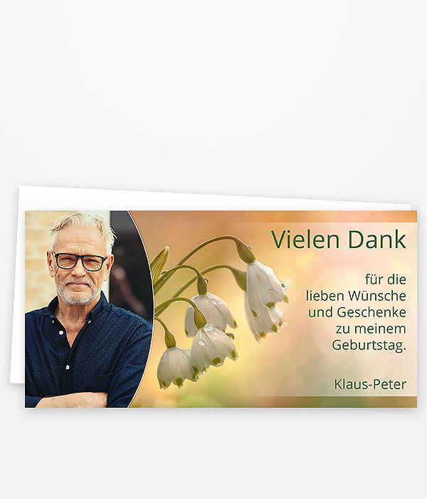 Mit schönen Danksagungen zum Geburtstag schenken Sie Freude zurück. Tolle Motive einfach online gestalten.