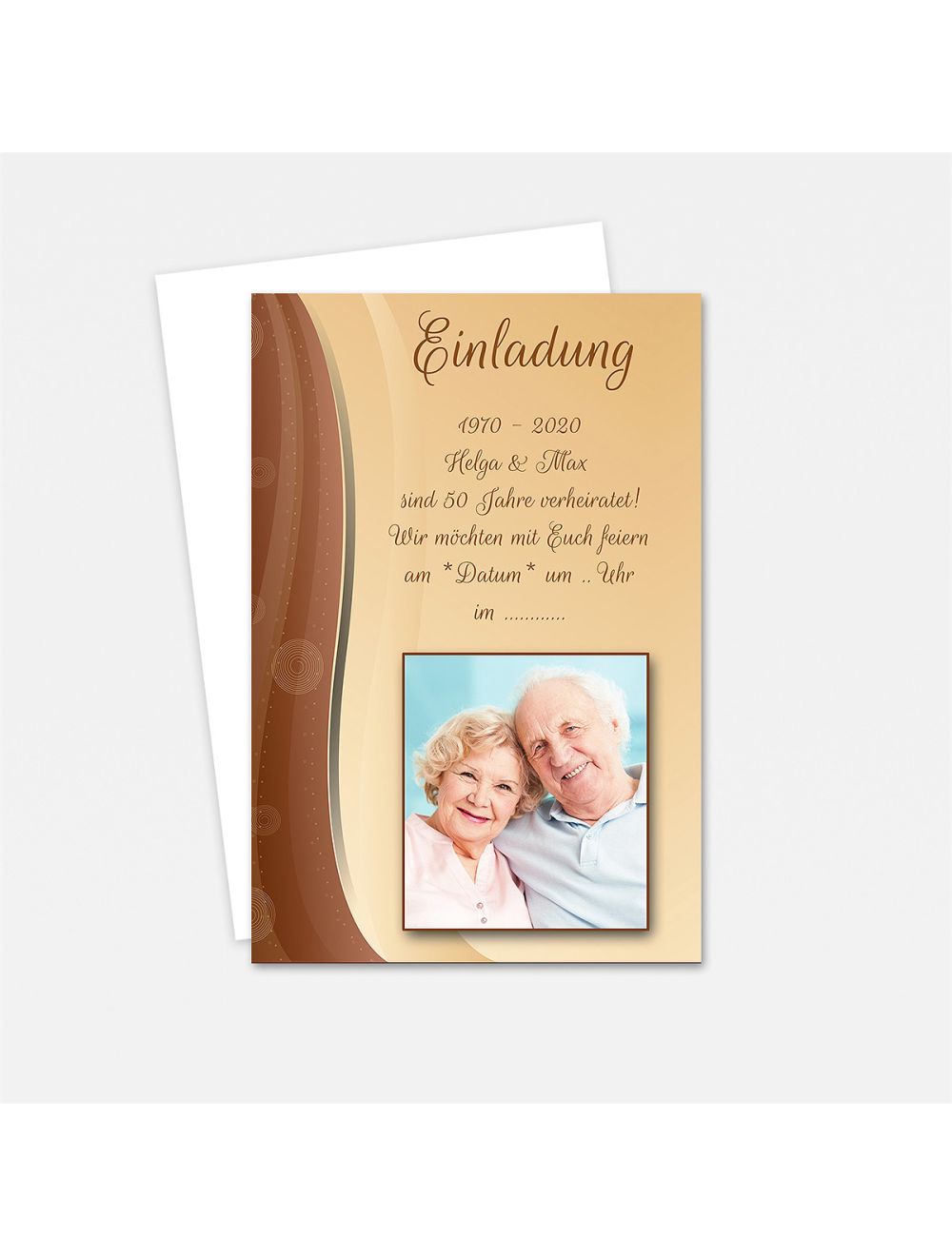 Einladungskarte zur Goldhochzeit mit Ornament in Brauntönen