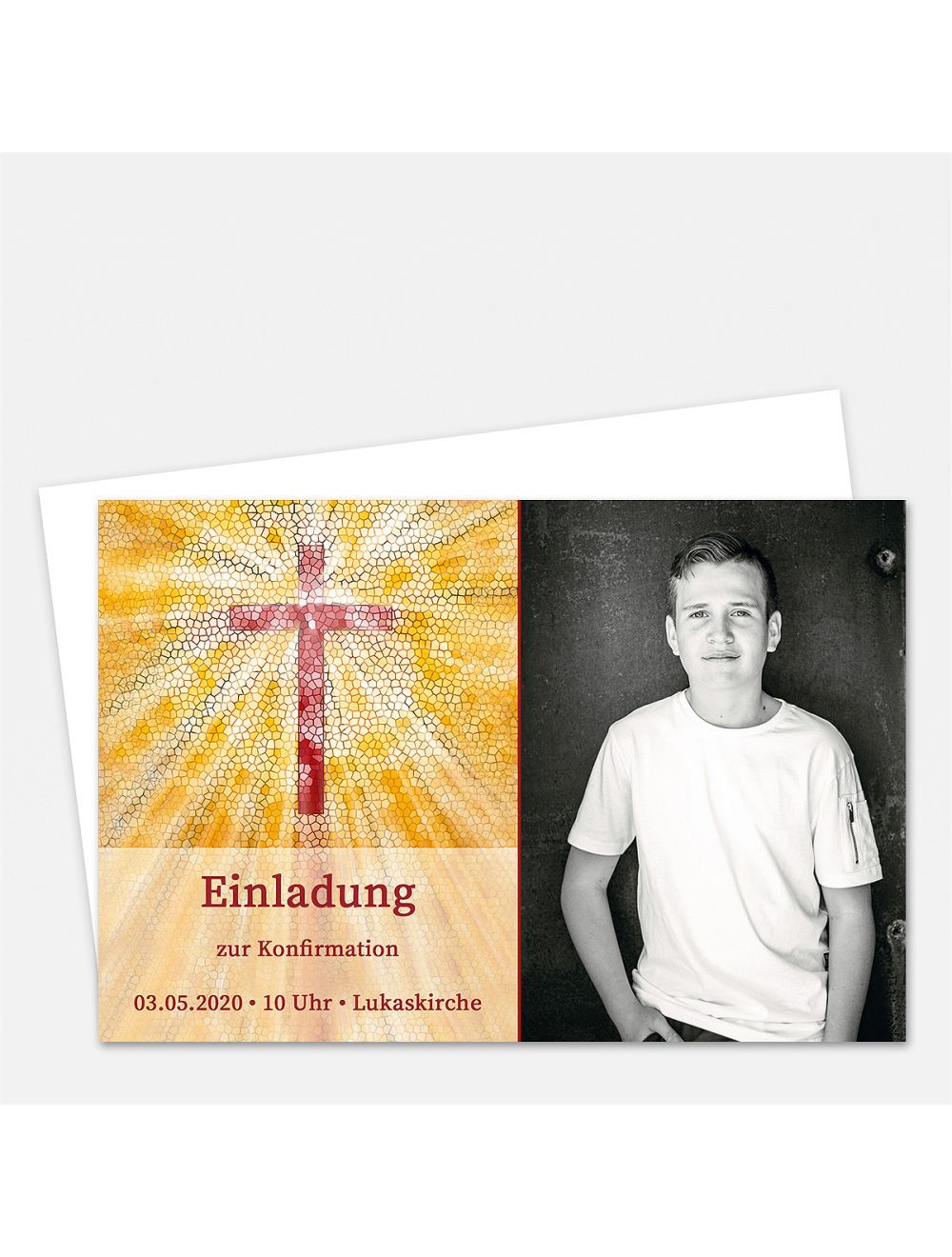 Einladung Konfirmation oder Kommunion mit rosa Streifen und Fisch